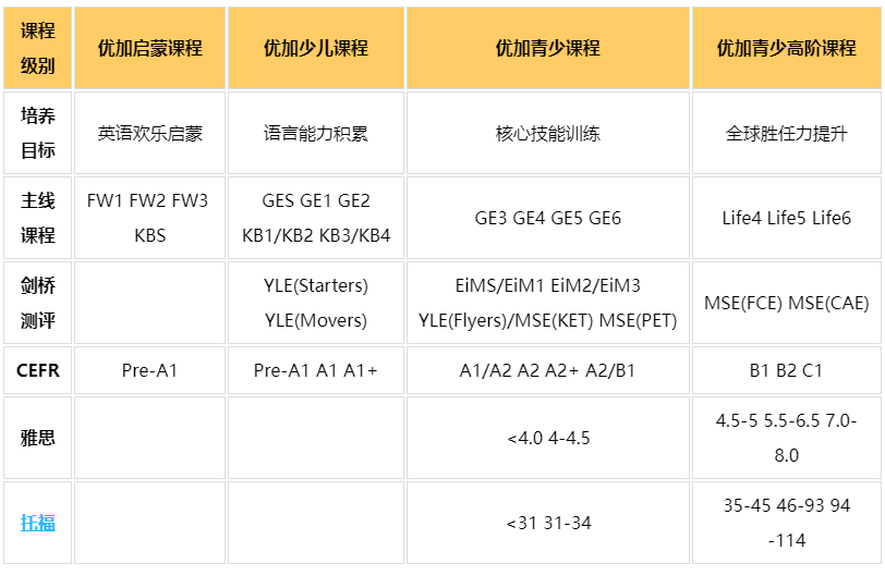 优加青少英语课程体系