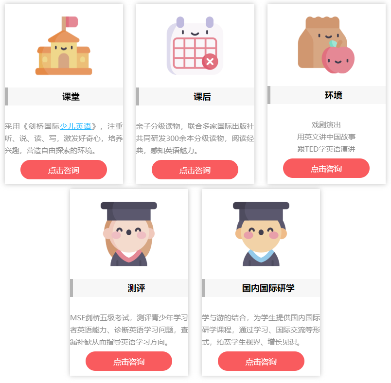 优加青少英语专注于青少英语教育及胜任力的培养,从视野、硬能力(英语能力与人文科技素养)、软实力(国际人才核心素养4C)和中国根基几方面来构建青少年胜任力培养体系。采用The APPB Approach(APPB:The Activity-,Project-,Problem-, Based Approach)教学法,基于活动参与(Activity)、基于项目完成(Project)和基于解决问题(Problem)的学习目标来设置教学流程,通过英语学习实现育人目标。